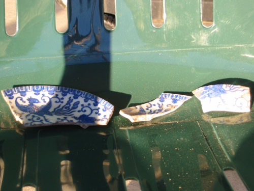Our neighbor Vince collects old bottles, and he asked if he could dig in our yard. Since we're planning on redoing the whole yard anyway, we figured this was the time to do it, so we said to come on by. Here's some of the stuff he dug out of the yard: