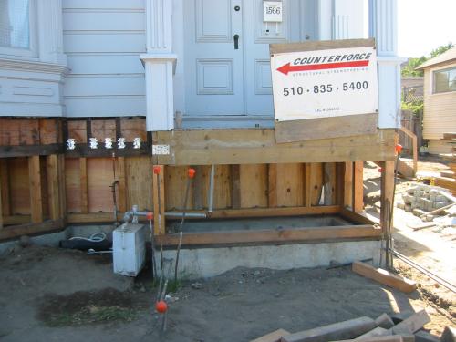The front porch, shown with shear panels installed below: