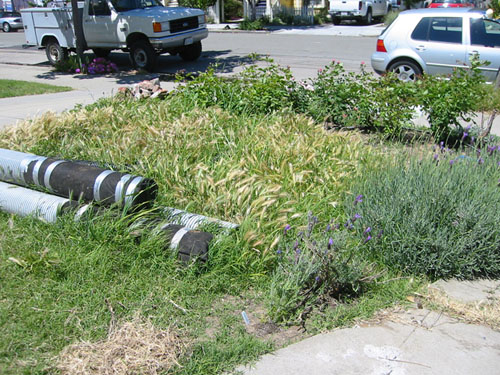 And now our triumph. Today was set aside for clearing the weedy patch in the front yard. We started here:
