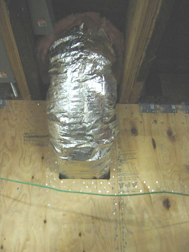 When the hole was set up, it was a simple matter of running the duct from the furnace to the vent in the dining room floor.