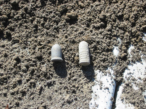 And now, the most interesting things we dug out of the shed foundation: two bullets; one rubber and one regular. I have no idea how they got there, but given the history of this neighborhood (which has been kind of dodgy for a while), they're not totally inexplicable.