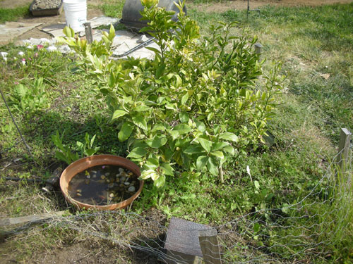And my current problem: I planted the citrus together in high-intensity configuration, and it turns out they don't much care for that. I'm thinking I need to dig them out and move them elsewhere in the yard, but where?