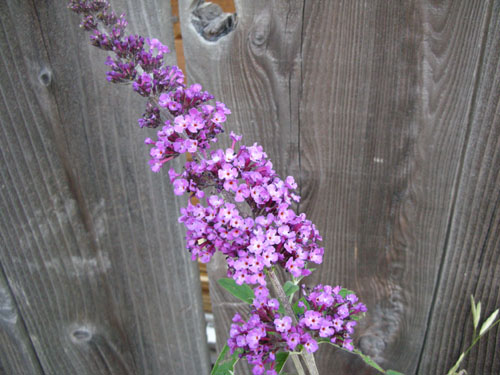 Now: a trio of Buddleias. I had one (Royal Red) and this spring I bought two more. This is one of them: Honeycomb. I like the yellow flowers, which are not too typical of Buddleias.
