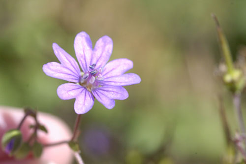 Here's a super-closeup of Geranium 'Bill Wallis' burning out in too much sun. This is an awesome little geranium because not only does it bloom like mad for most of the season, but it self-sows very politely.