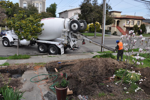 The concrete truck driver told us we had a charmed job: we'd estimated the amount correctly, we listened to his advice on how to signal him, and the weather held out, too. It was a pretty good placement, and makes me a little more confident about doing the stem wall part in a week or so.posted by ayse on 03/07/11