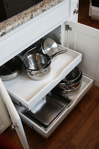 That organizer is flexible, too, so you can size it to fit the actual pans you have. You could definitely store those pans in that cabinet without the pullout organizer, but it would be a lot more work to get at any specific one of them.