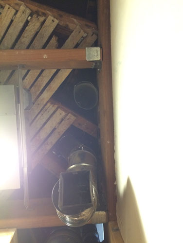 And Noel went to the house on Sunday and, after he made a few urgent phone calls about the rain cascading from attic to basement, he used willpower and stubbornness to run a rigid duct around the niche where it will be easy to connect it to the attic.