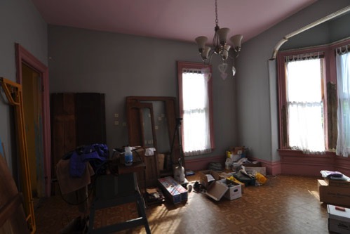 In the Accordion Room, the shape of the room is basically the same, but it is swapping over from too-small-to-be-useful bedroom to generously sized bathroom. This is where the clawfoot tub will go (in front of the window there).