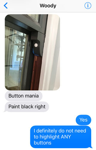 Woody has also installed the horns on the front windows. Of course, black horns on black sashes against a dark jamb are a little unreadable.